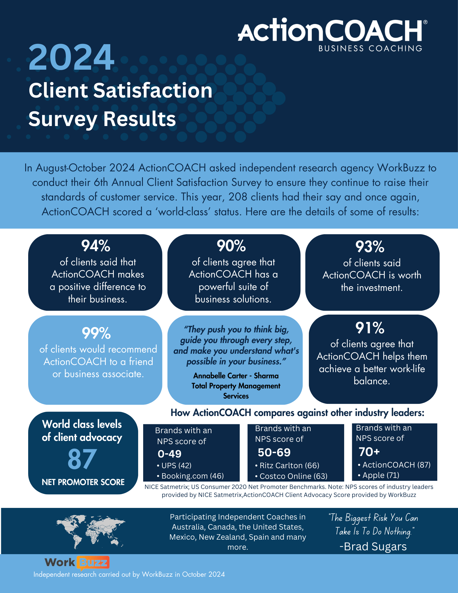 Far beyond the team’s achievements, our proudest accomplishment is the success of our clients. On average, our clients experience 50% growth in revenue and 135% growth in profit year after year. ActionCOACH Central Ohio is ranked Top 3 in the United States and Top 10 Worldwide because our amazing clients. We take pride in the results that we achieve alongside our clients.